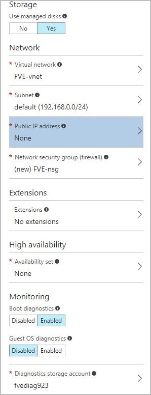 Storage account (available for non-managed disks only): Disks for Azure virtual machines are created in storage accounts. Create a new storage account or select an existing account. |