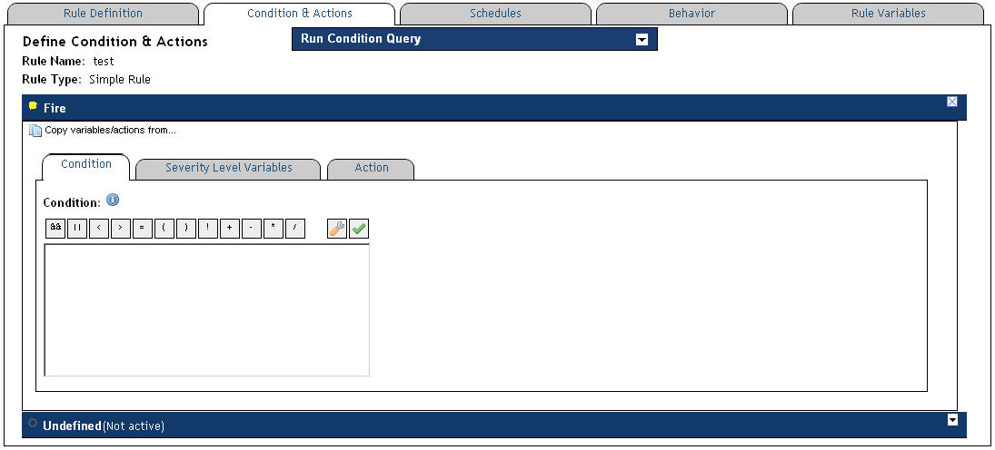 Open the Conditions & Actions tab and click Fire to define a condition for that state.