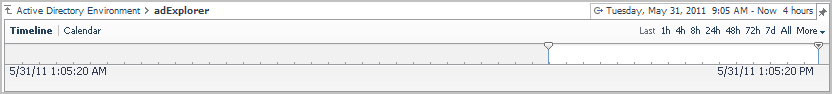 By default, Foglight for Active Directory displays metrics, alerts and messages that have occurred within the last four hours. This time range is configurable using the Time Range popup located in the upper right corner of the browser interface.