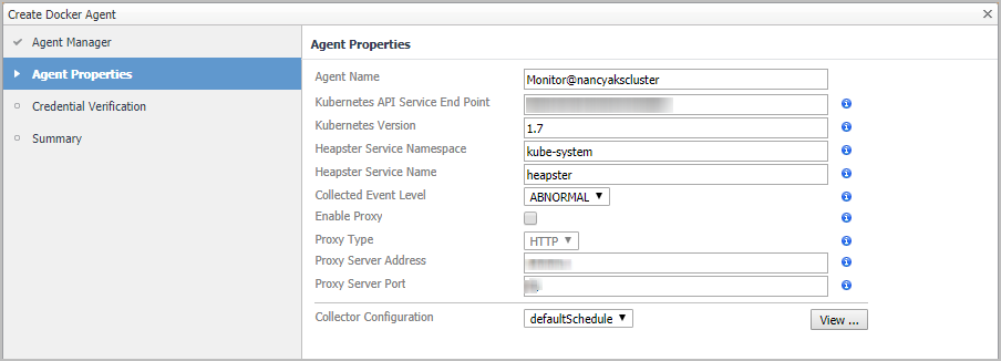 Kubernetes API Service End Point: Get this information from the KubeConfig file. For more information, see Enabling Heapster service in monitored environment .