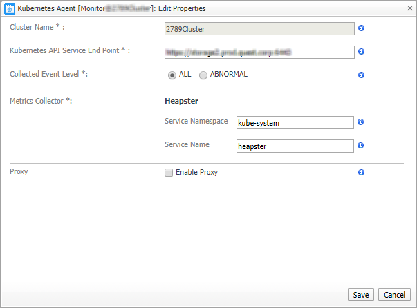 NOTE: If the Prometheus is deployed through our platform, the Service Namespace and Service Name cannot be updated through Kubernetes Agent Edit Properties wizard. You can use Remove Prometheus to remove Prometheus and deploy a new one.
