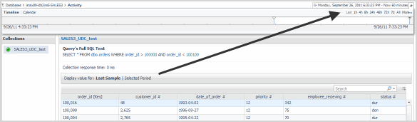 Display value for. Allows you to view the SQL query’s metrics, either for the last sample (Last Sample Taken) or for the entire specified time range (Selected Period).