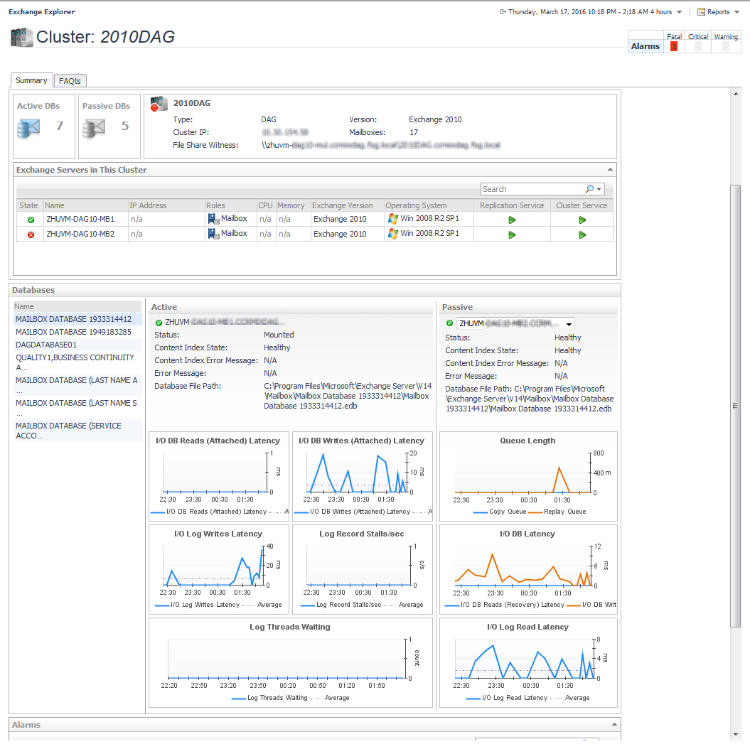 NOTE: You can also click the view in Explorer link on that cluster’s Exchange Cluster Environment Summary view to display this view.