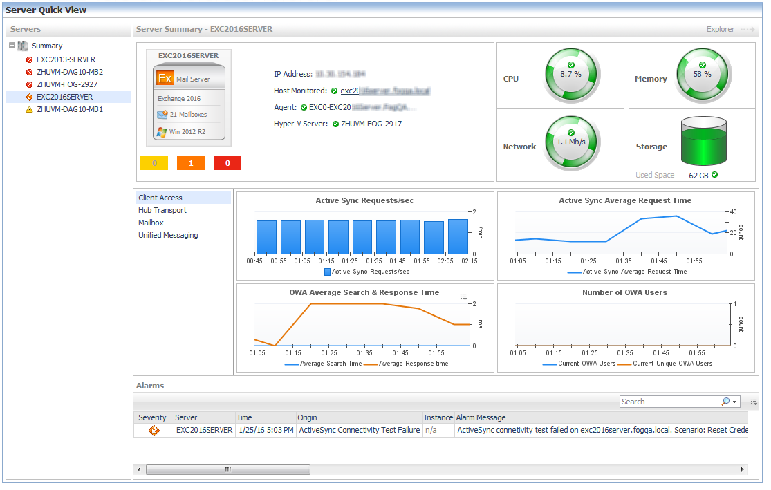 An Exchange server is any server that has Exchange services installed on it. The following views are available to monitor the health of your Exchange servers: