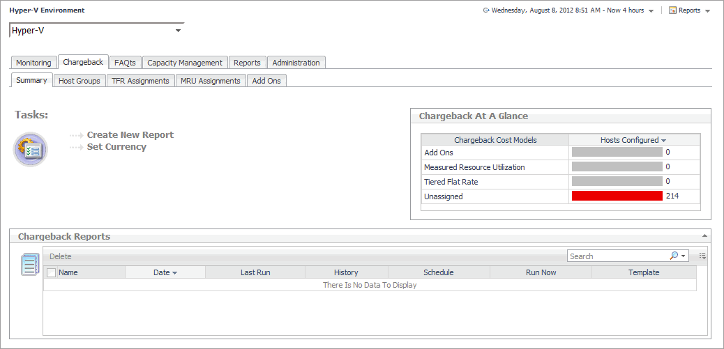 In an IT environment with a high number of physical and virtual machines, it is often important to determine the true cost of virtual machines in order to adequately plan resources for system utilization. The Chargeback tab available on the Hyper-V Environment dashboard provides standard models, allowing you to get insight into host machine usage within a data center.