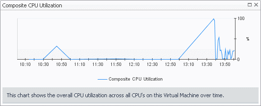 This tab only appears when you are exploring individual servers and virtual machines. It provides more details about the state of resource-related metrics over a selected time period and also shows any events that occur during that time-frame. This can give you a good idea of how the current resource consumption affects your environment as a whole. For example, a steady increase in memory consumption can often trigger memory utilization alarms, which typically indicates that you need to allocate more memory to the affected component.