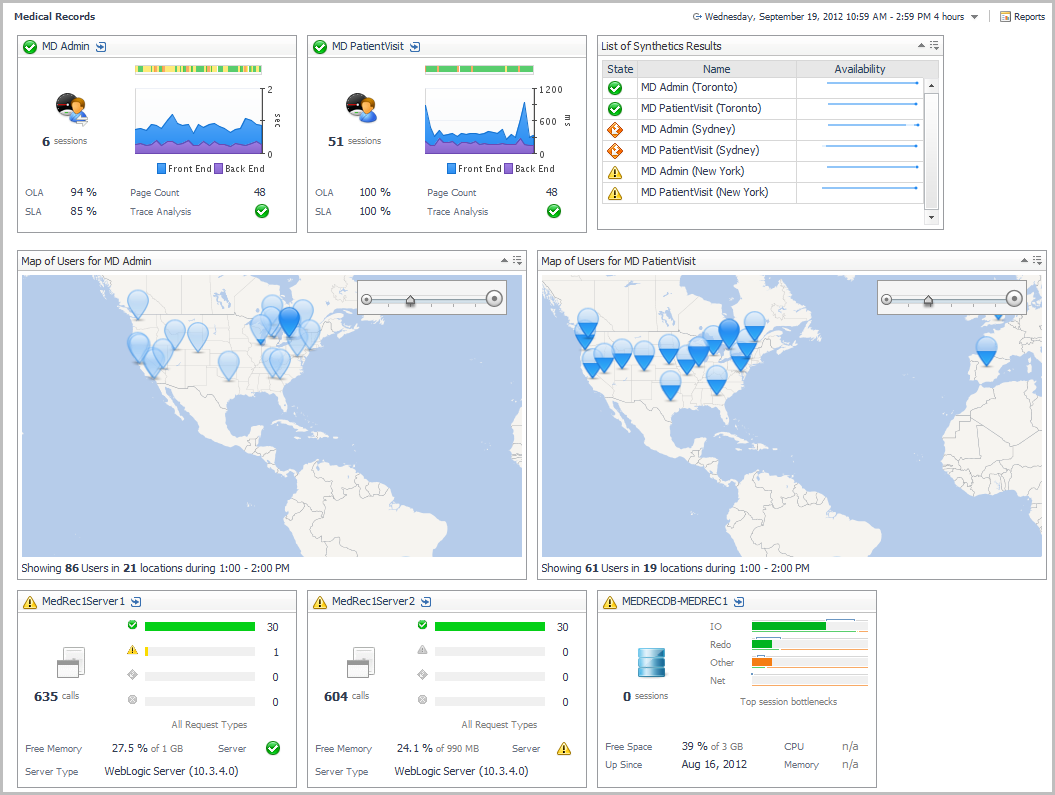 Expand Oracle Instances and drag and drop a database server instance onto the dashboard (for example, MEDRECDB-MEDREC1).