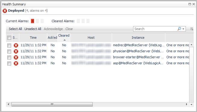 ). Click the status icon for an affected component (system, server, or application) to obtain information about the source. For more information, see Reviewing the health of your systems.