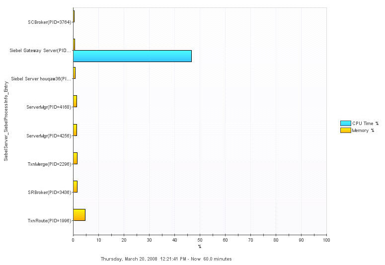 CPU % bar to isolate the CPU analysis to an individual Siebel server operating system process.