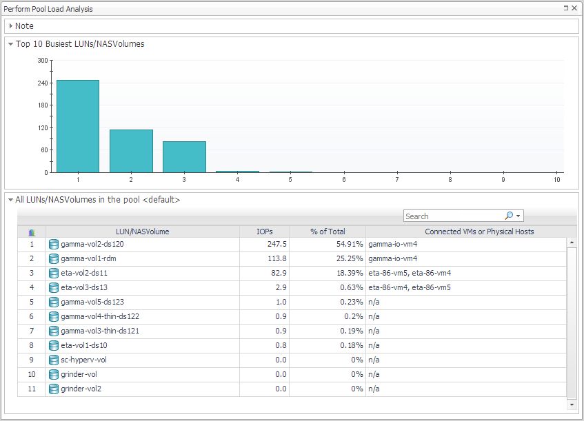 Perform Pool Load Analysis. The Pool Load analyzer identifies the busiest LUNs and ranks them based on their activity during the same time range over the last 30 days (not the current time frame). Activity is measured in operations per second. |