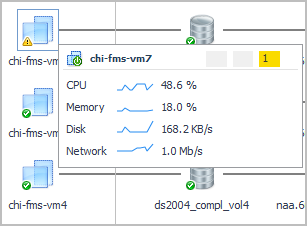 The following workflow explains how you can verify connectivity and the status of entities and storage devices in your infrastructure using a topology diagram. This procedure assumes that you navigated to a topology view from a Virtualization Explorer dashboard (see Introducing the Virtualization Dashboards) or from a Storage Explorer component dashboard (see Investigating a LUN or Investigating a NASVolume).