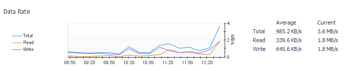 - Data Rate. Plots values for Data Read Rate and Data Write Rate.
