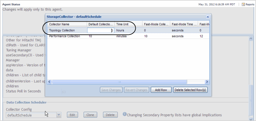 The collection interval can be increased to reduce the collection frequency impact in busy environments. It is not recommended to reduce the performance collection interval to less than five minutes. You can change the schedule for all agents by editing the default schedule, or clone the default schedule to create and select a specific schedule for a Storage Collector agent.