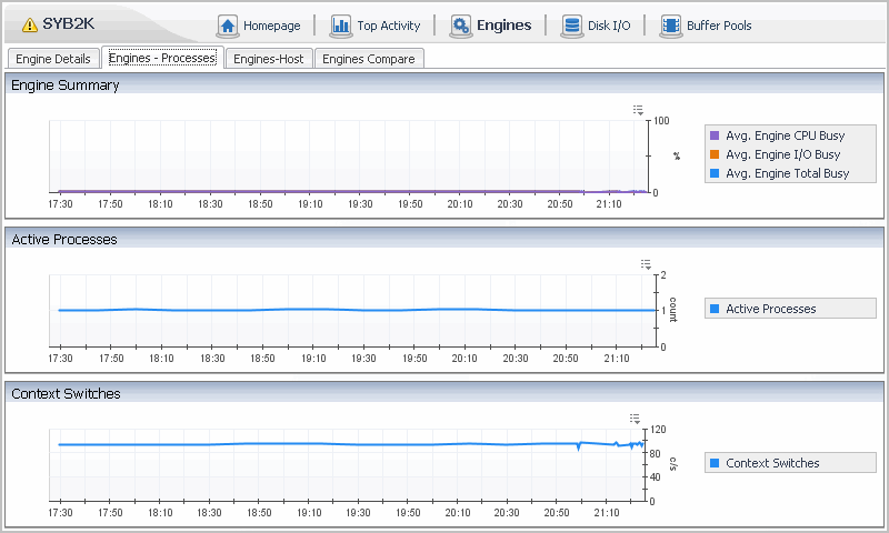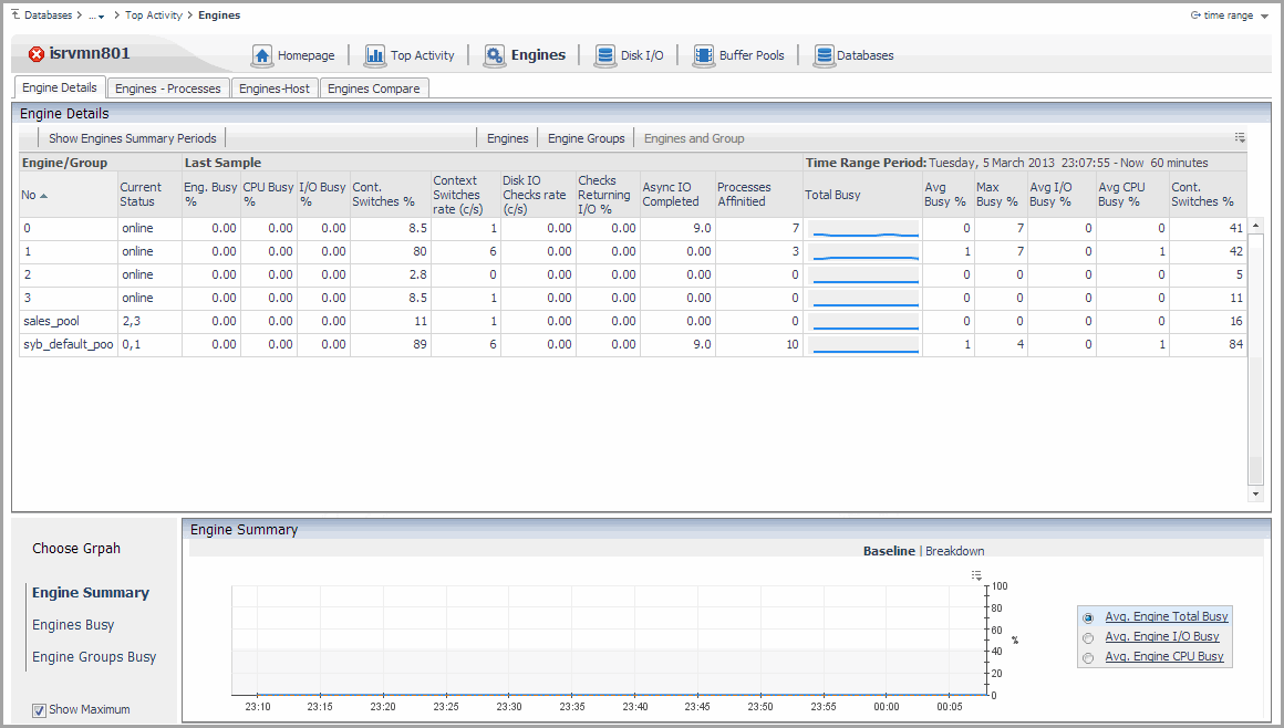 Plots an average of how busy an engine group or thread pool was over time. Select from the list of available engine groups or thread pools.