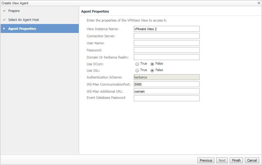 View Instance Name. Name that you want to use for the view instance. This name becomes the name of the agent, and appears in the drop-down list at the top left of the VMware View dashboards. The default name is VMware View x, where x is the next sequential number that is available.