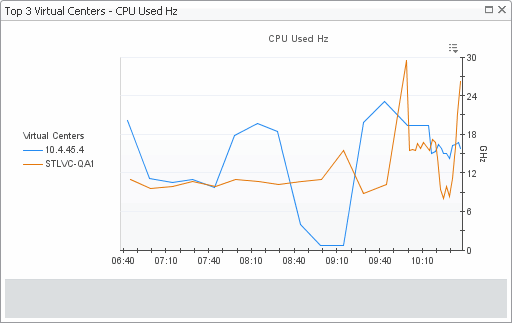 Used Hz (in the graph). Displays the Top 3 Virtual Centers -CPU Used Hz dialog box.