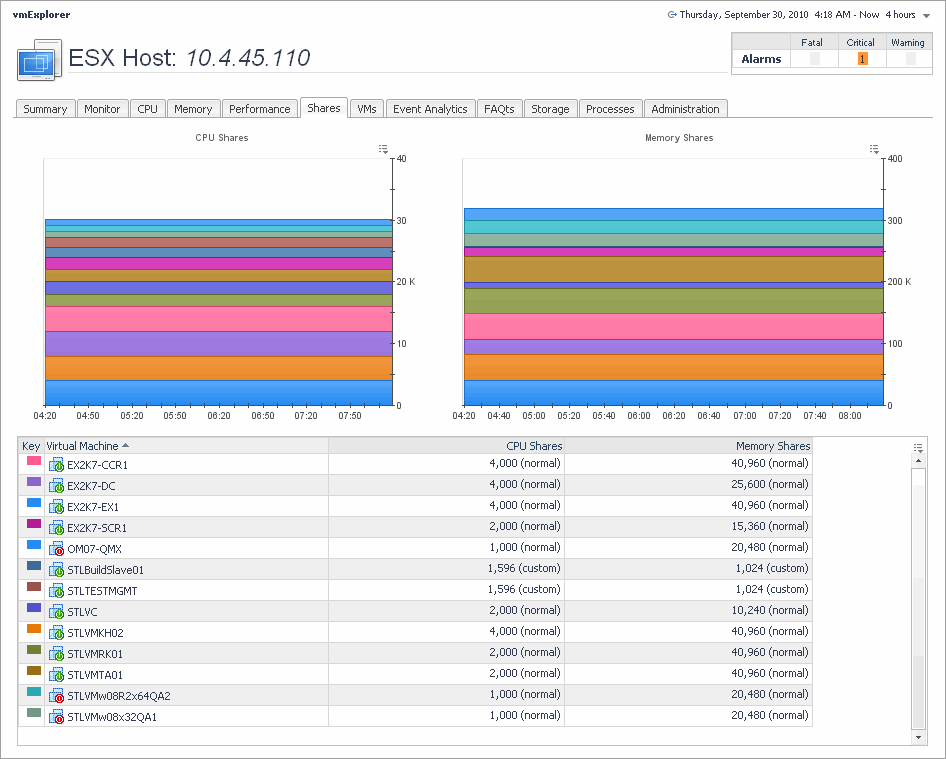 On the Virtual Infrastructure view, that appears on the navigation panel, select an ESX host. |