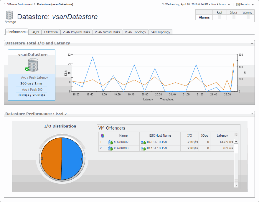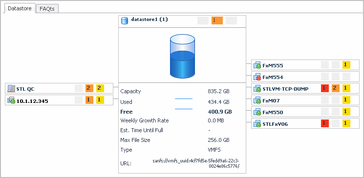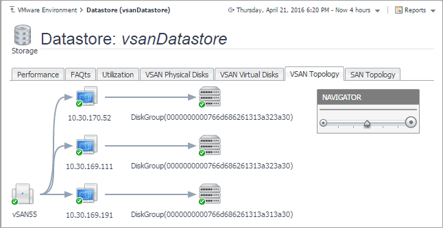 NOTE: The VSAN Physical Disks, VSAN Virtual Disks, and VSAN Topology tabs appear in this view only if a VSAN Datastore is selected. For more information about VSAN datastores, see VSAN datastores . |