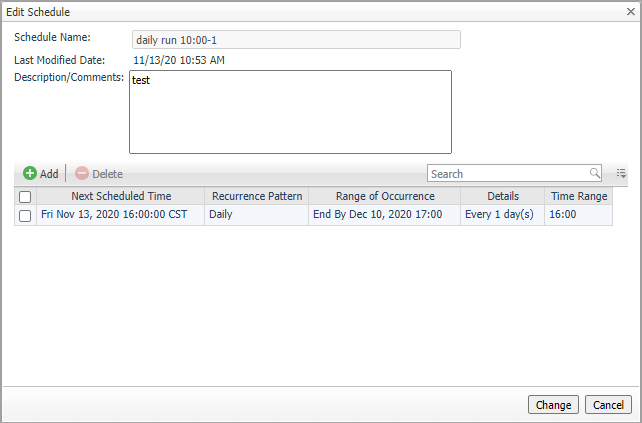 Click the schedule you want to edit and an Edit Schedule dialog box appears. |