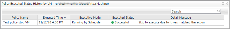 Last Executed Time: Shows the last time when the policy was executed. Click the time and a Policy Executed History by VM dialog box will appear. |