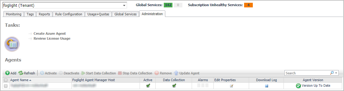 Using Foglight Hybrid Cloud Manager for Azure Monitoring Tab Tags Tab Reports Tab Rule Configuration Tab Usage & Quotas Tab Global Services Tab Administration Tab Optimizer Tab Cost Tab Policy Management Tab