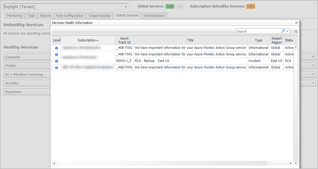 Subscription Unhealthy Services collect the Azure Subscription service issues displaying in the Azure portal Service Health.