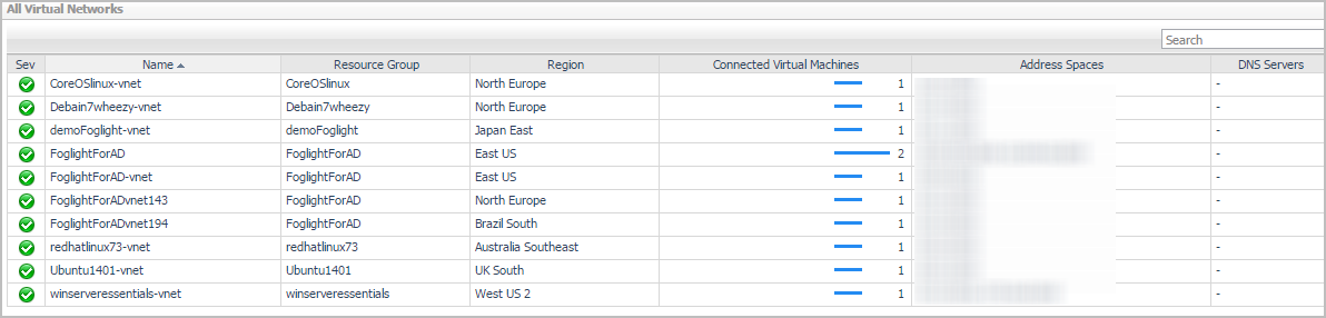 The Virtual Networks view is a tree view. It lists the virtual networks existing in your environment, and shows their severity state.This view appears on the left when you select the Virtual Networks tile in the Actions bar.