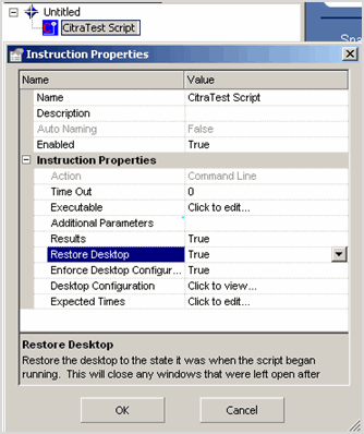 To enable FTR’s restore desktop feature, set the Restore Desktop option to True in the CitraTest instruction properties. |