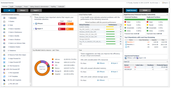 Rapid Recovery/VEEAM. Provides an overview about the protected and unprotected virtual machines in the monitored environment.