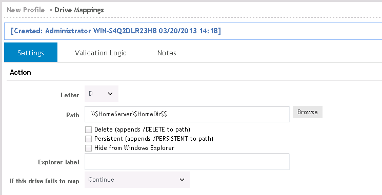 One of the most commonly used places for using Predefined Dynamic Variables is in the Drive mappings object. Use the $HomeServer and $HomeDir variables to map a home drive for your users.
