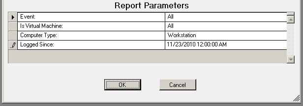 The USB-Port Security - Detailed by User report prompts the user for the Scanned Since date to report on. The report can also be run for All machines, Virtual Machines only or Non-virtual Machines only.