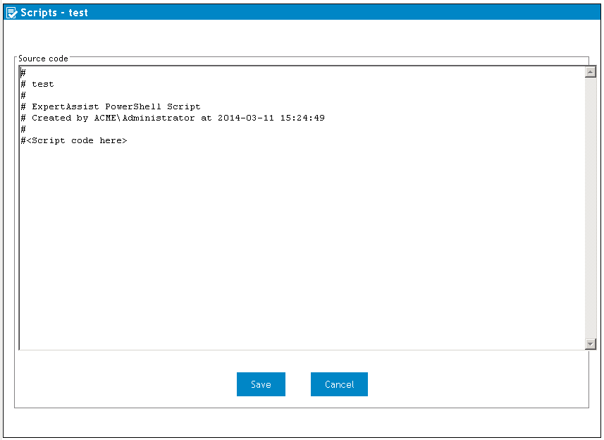 3. Click Save to commit changes. Or click Cancel to discard changes made to the script during editing and return back to the script list page.