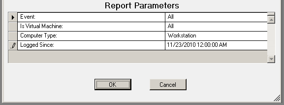 The USB-Port Security - Detailed by User report prompts the user for the Scanned Since date to report on. The report can also be run for All machines, Virtual Machines only or Non-virtual Machines only.