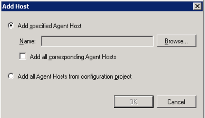 You can add a particular agent host or all agent hosts from the configuration project. To add all agent hosts that are engaged in mailbox or public folder synchronization jobs, select the Add all corresponding Agent Hosts check box.