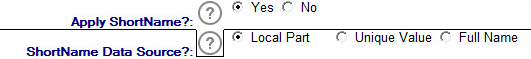 When ‘Apply ShortName?’ is set to ‘Yes,’ this field will appear. When checking the ShortName and applying a value, if that is not set on the Domino Directory Documents, choose the method to create a ShortName. This can be automatically generated as a unique value using (@Unique), taken from the Internet Address Local Part (left of the @ sign) or set to the Full Name. |