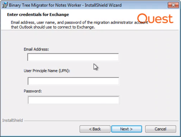 EXCREDDIALOG_UPN: The “User Principal Name” of the MAPI Migration Administrator account. NETBIOS format (domain\user) is not supported.