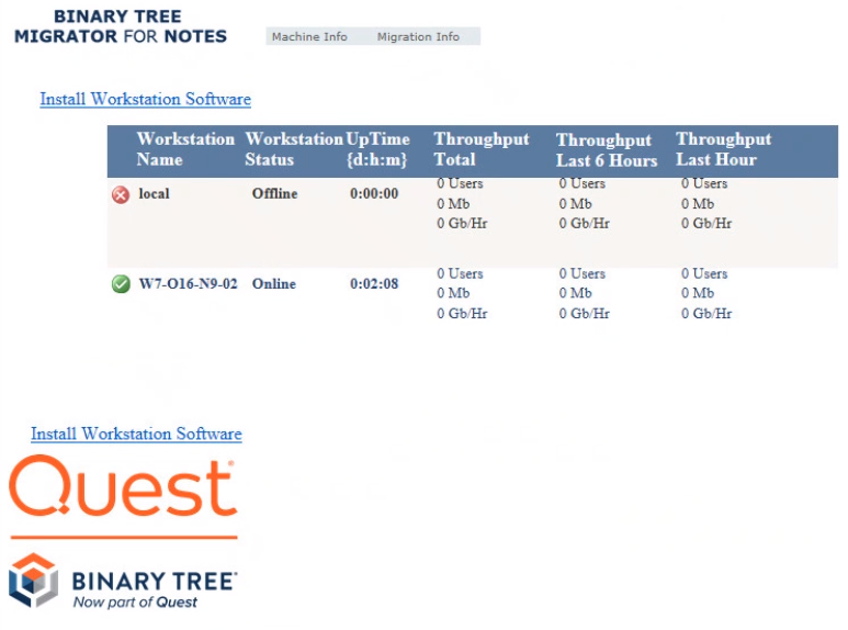The Migration info page displays what each workstation is currently doing