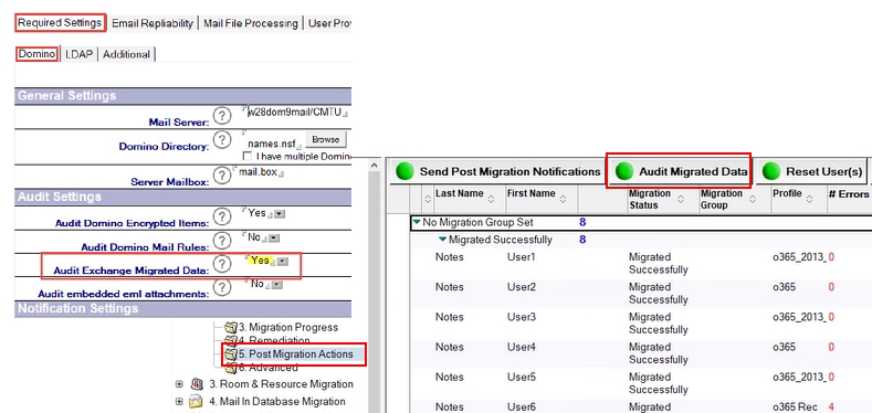 In addition, this can be used to audit results to reduce the size of user Domino mail files or archive databases after the migration phase on the Domino servers and user's workstation replicas. For example, removing documents with a Migration Status of 1 would leave only non-migrated data or documents that could not be migrated completely due to malformation or size restrictions in Exchange from a source database.