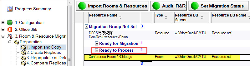 1. Expand the Rooms & Resources Migration | Preparation | Import and Copy view in the Navigation Pane: