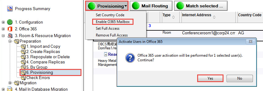 Refer to the Provisioning View screenshot below and set up the Office 365 mailboxes in the following steps: