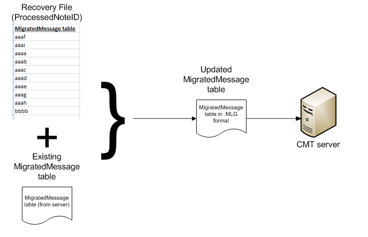 In the event of a crash, the ProcessedNoteID file on disk contains the list of unique identifiers of each document processed during the failed migration. This file is read by the Migration Worker application, merged with any existing migrated message information residing on the server for the user, and stored back on the migration server prior to the next migration. This ensures that the migrated message table on the Migrator for Notes server is up to date when the migration is restarted.