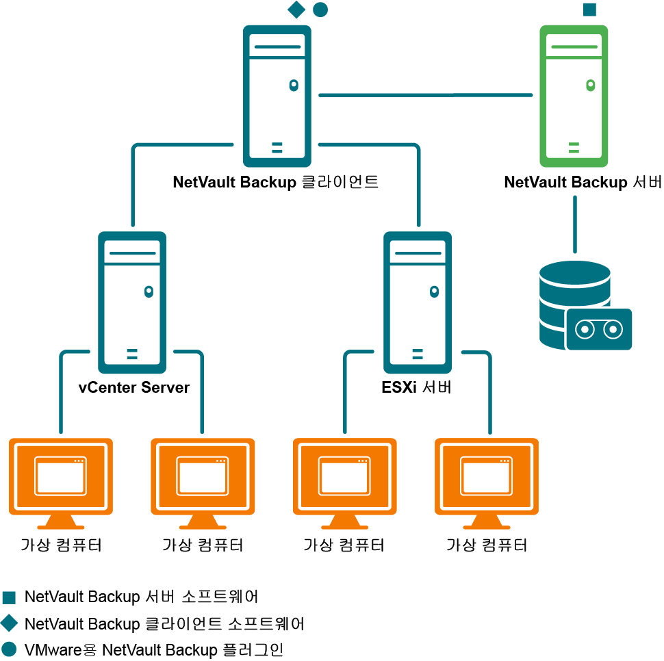 VMware용 플러그인‑을 모든 Windows 또는 Linux 기반 NetVault Backup 클라이언트에 배포할 수 있습니다. 이 클라이언트는 백업 프록시 역할을 합니다. 실제 컴퓨터나 가상 컴퓨터를 백업 프록시로 선택할 수 있습니다.