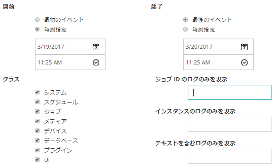 [最初のイベント]:最初のログ・メッセージから表示する場合は、このオプションを選択します。