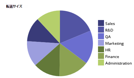 次の図は、サンプル・データ・セットに対応する円グラフ・ビューを示しています。
