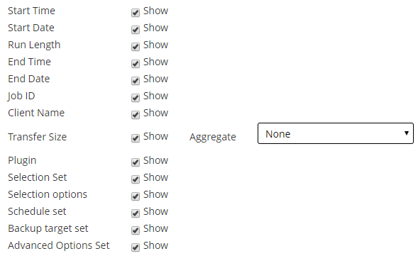 Show columns: To show hidden columns, click the corresponding Show check boxes. |