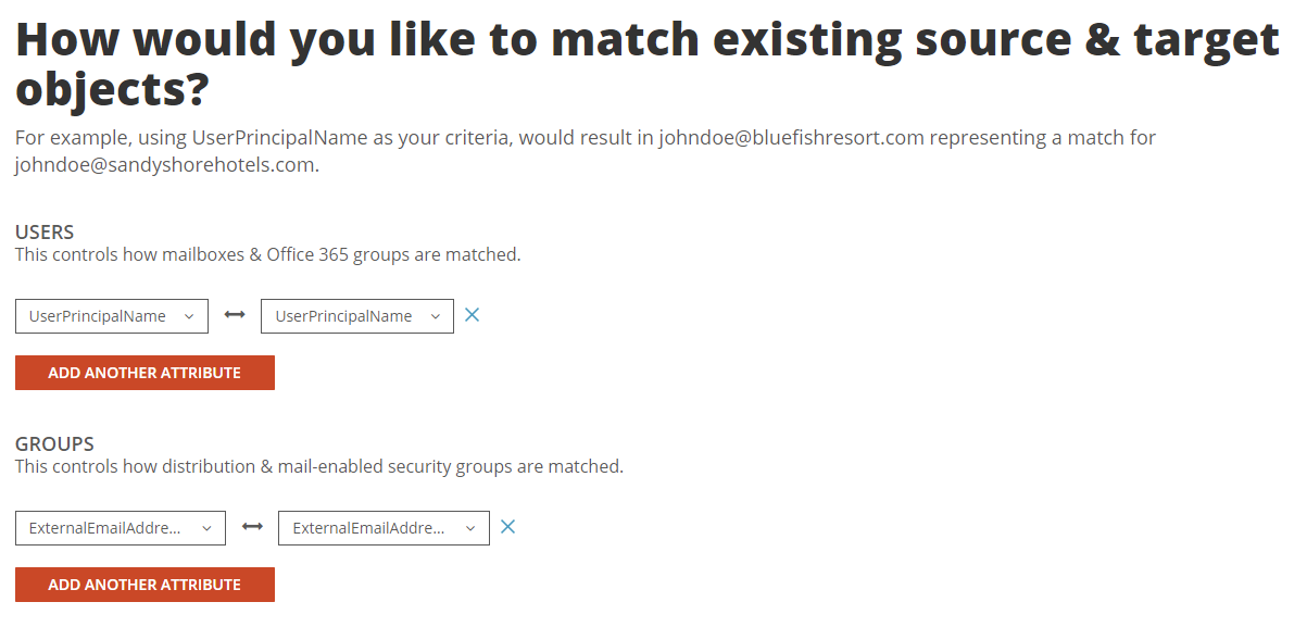 NOTE Multiple attributes can be selected and On Demand Migration will evaluate each one until it finds a matching source and target object. If more than one attribute is selected, the first attribute that matches is used. |