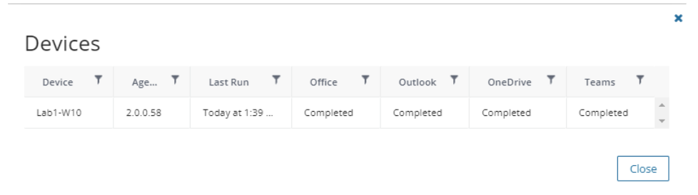 - Click the Devices link in the user detail panel to review the device history information and application configuration status.