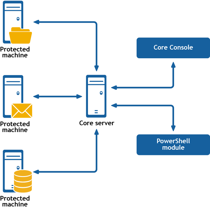 The PowerShell module interacts with the Rapid Recovery Core