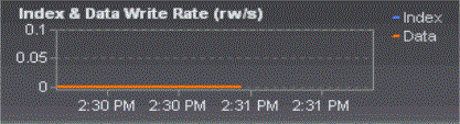 The Index & Data Write Rate graph depicts rates for retrieving index and data pages from the buffer pools for the application over consecutive monitoring intervals and writing them to the database. These rates are based on the number of pages written per second. The graph contains the following series: