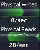 This section of the Home Page displays data for the number of data cache physical writes and data cache physical reads per second. |